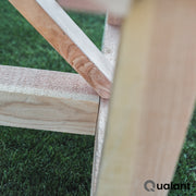 Het verschil met tuintafel Timber is het blad: tuintafel Timbrela heeft een dicht blad van brede planken, en tuintafel Timber heeft een open blad met smallere planken.