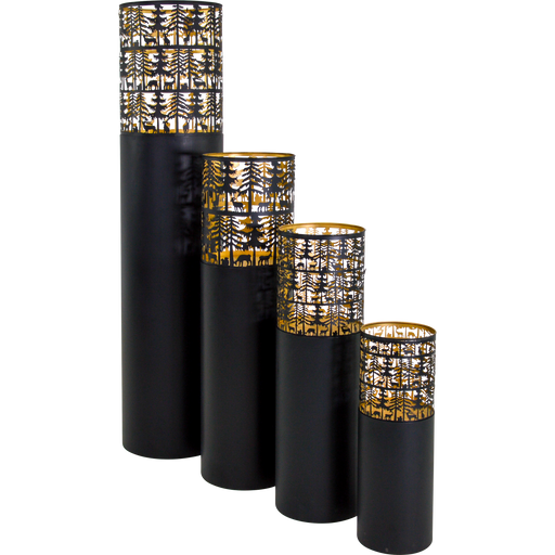 Windlicht zuil zwart/goud S/4