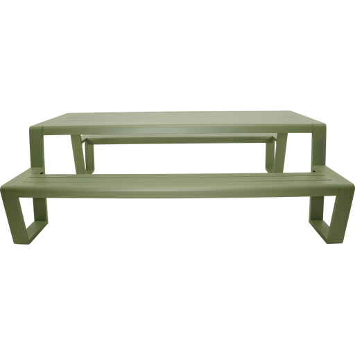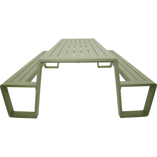 220x183x74cm | Table 220x87x74cm | Bench 220x29x44cm | Aluminium matt soft green frame and table top