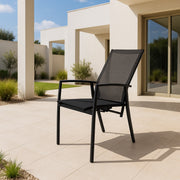 Aluminium frame, 2x1 textilene, backrest adjustable ; Lengte: 58cm; Breedte: 60cm; Hoogte: 94/100cm
