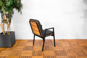 Aluminiumrahmen, schwarz pulverbeschichtet/Akazienholz/Polyester; Länge: 60 cm; Breite: 70 cm; Höhe: 87 cm