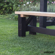 Der Unterschied zur Woud-Gartenbank ist das Untergestell. Die Gartenbank Woud Black hat ein schwarzes Gestell und die Gartenbank Woud hat ein weißes Gestell.