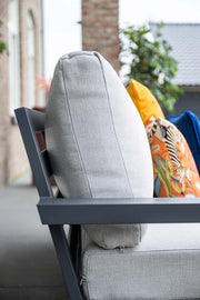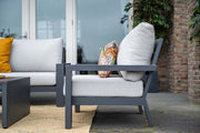 De zit- en rugkussens van zowel de stoelen als de bank zijn royaal gevuld en bieden een hoog zitcomfort. Dankzij de waterafstotende coating zijn de kussens bestand tegen lichte neerslag en eenvoudig te reinigen. De zachte bekleding zorgt voor een luxe en rustige uitstraling en draagt bij aan ontspannen zitmomenten.
