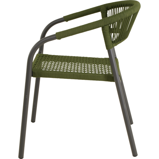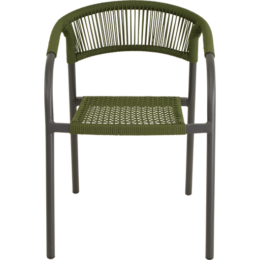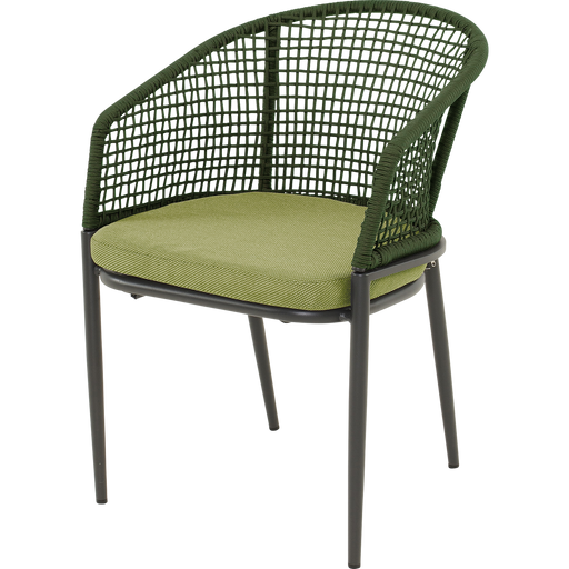 56x62x77cm | Aluminium frame matt anthracite | Ø4mm rope color dark green | 277gr∕m² olefin cushion | Max. carryweight: 120kg