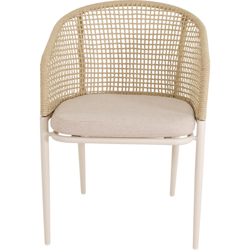 56x62x77cm | Aluminium frame matt beige | Ø4mm rope color beige | 240gr∕m² olefin cushion | Max. carryweight: 120kg