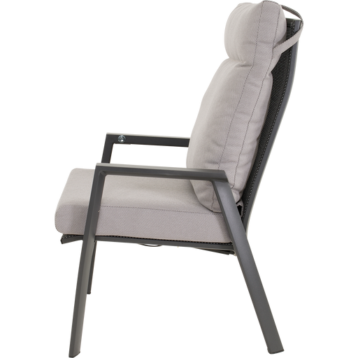56x62x77cm | Aluminium frame matt anthracite | Ø4mm rope color dark grey | 270gr∕m² olefin cushion | Max. carryweight: 120kg
