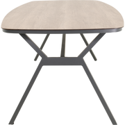 Dankzij het HPL-top is het blad bestand tegen krassen, vlekken en dagelijkse intensiteit, waardoor de tafel lang fris oogt. Het aluminium frame biedt stabiliteit zonder zwaarte, waardoor hij makkelijk verplaatst kan worden en bestand is tegen dagelijkse slijtage. Het ovaal ontwerp creëert een warme, sociale sfeer aan tafel en vergroot de conversatieruimte tijdens maaltijden en informele bijeenkomsten.