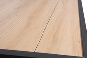 Aluminium frame. Ceramic wood color table top; Lengte: 147cm; Breedte: 95cm; Hoogte: 75cm