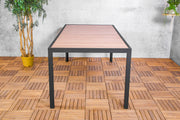 Aluminium frame. Ceramic wood color table top; Lengte: 207cm; Breedte: 95cm; Hoogte: 75cm