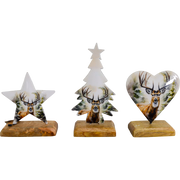 Emaille figuren op voet, 3 assorti