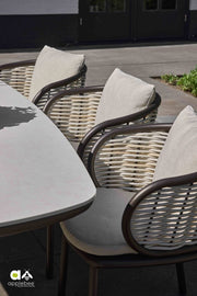 Op standaard eethoogte is de Melville dining tuintafel verkrijgbaar in verschillende maten: