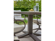De Zanzibar dining tuintafel past in de retrosfeer van begin 20e eeuw. Net als de originele ontwerpen uit die tijd, zal ook deze Zanzibar na vele jaren niks aan zeggingskracht hebben verloren. Hij blinkt uit in comfort en gebruiksgemak. De aluminium tafelpoot is gecentreerd voor optimale beenruimte. Het HPMS stone tafelblad heeft een zgn. vals-ovaal vorm, die ook aan de kopse zijden volwaardige zitplaatsen biedt.